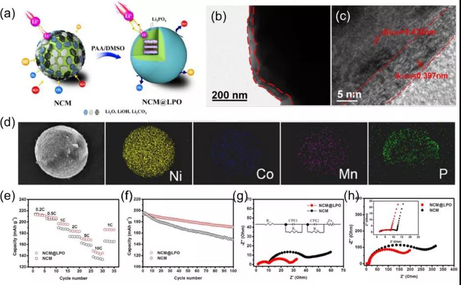 圖5、Li3PO4(LPO)修飾LiNi0.8Co0.1Mn0.1O2(NCM)