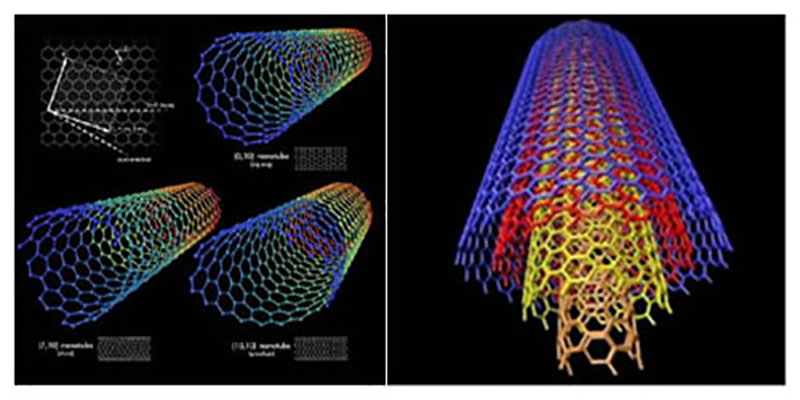 碳納米管可以分為單壁碳納米管(SWCNT)和多壁碳納米管(MWCNT)。SWCNT的管徑為0.75-3nm,長(zhǎng)度為1-50μm。MWCNT的管徑為2-30nm,長(zhǎng)度為0.1-50μm,層數(shù)2-50層。利用碳納米管作為導(dǎo)電添加劑與碳纖維的作用相似。碳納米管難以分散的問(wèn)題是影響其在實(shí)際應(yīng)用中的重要課題,目前可以通過(guò)高速剪切、添加分散劑、做成分散漿料、超細(xì)磨珠靜電分散等工藝解決。